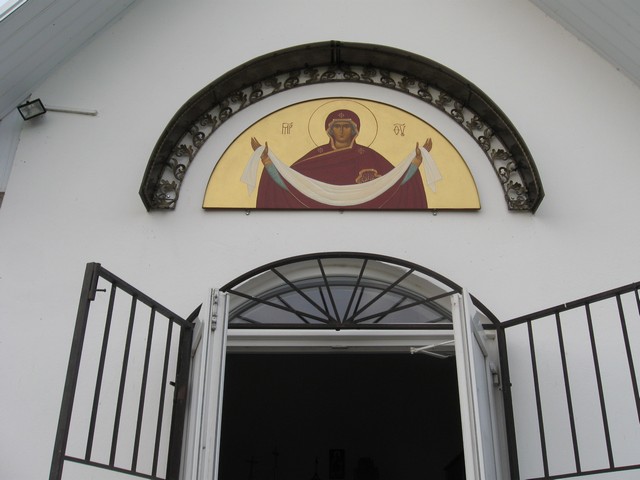 Храм построен трудами настоятеля, теперь в нем продолжаются работы по внутренней отделке - сооружается иконостас и продолжается роспись стен.